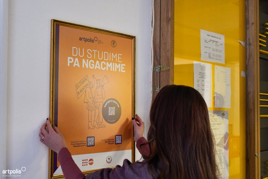 Artpolis has officially launched the International Campaign “16 Days of Activism Against Gender-Based Violence,” placing students and the university environment at the center of its focus. With the distribution of the informational posters “Study Without Harassment” across 14 faculties of the University of Prishtina “Hasan Prishtina,” this initiative marks the first step in a campaign dedicated to awareness, protection, and collective action.