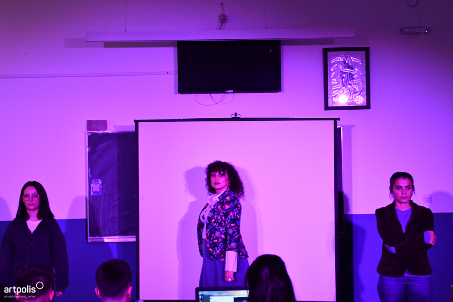 The story unfolds in a university setting, where characters Krenari, Dafina, Lea, Ardi, and Professor Drita confront the pressures and challenges of the digital world. Using the Forum Theatre method, and facilitated by Berat Bajrami, the audience was invited to interact, debate, and propose concrete solutions, becoming an active part of both the scene and its narrative.