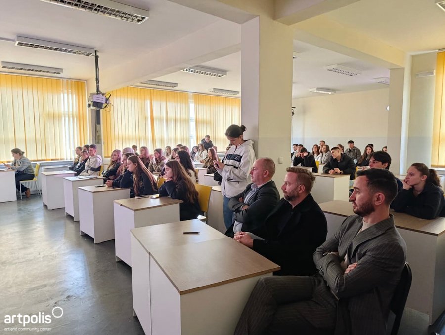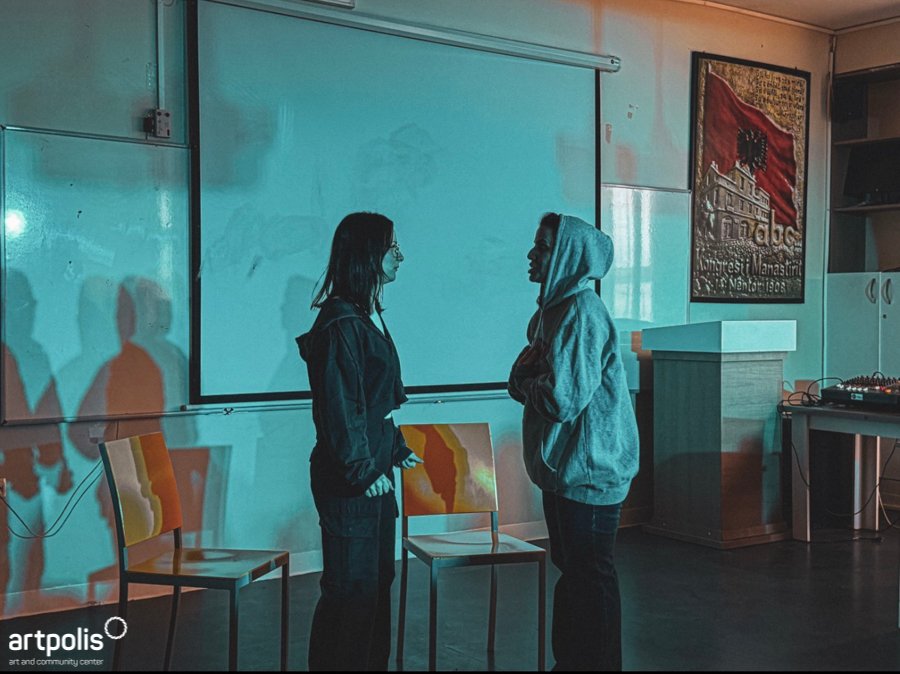 “Behind the Screen” returned with its first rerun in 2026 in Vushtrri, at the “Eqrem Çabej” High School. It brings to the stage realities relevant to young people’s lives, reflecting on how communication and relationships often take a different direction in digital spaces. The performance explores situations in which technology becomes part of everyday reactions—sometimes without fully considering the consequences these actions may have on others.