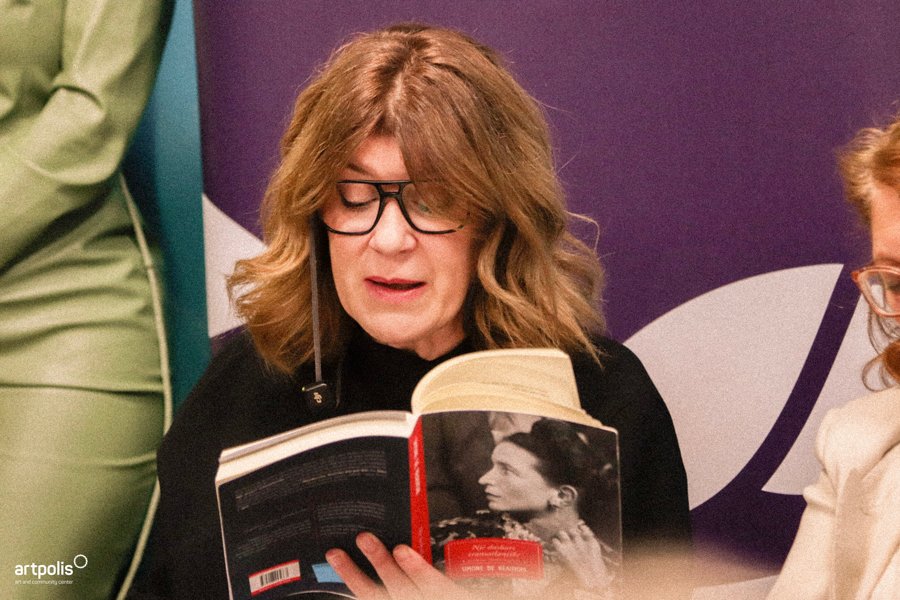Ky aktivitet solli një lexim performativ intim dhe të fuqishëm, ku fjalët e Beauvoir morën jetë përmes zërave të aktores Rebeka Qena dhe shkrimtares Nerimane Kamberi, të interpretuara në shqip dhe frëngjisht. Përmes kësaj ndërthurjeje gjuhësh, u reflektua universaliteti i ideve të saj mbi lirinë, identitetin dhe rolin e gruas në shoqëri.
