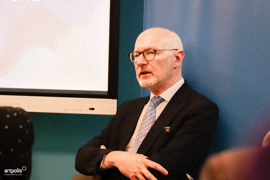 Fjala përshëndetëse e Ambasadorit të Francës në Kosovë, Olivier Guérot, theksoi rëndësinë e bashkëpunimit kulturor dhe fuqinë e artit dhe mendimit kritik. Fjalimi i tij mbi veprimtarinë e Simone de Beauvoir ishte në gjuhën frënge, qëllimisht—siç e theksoi edhe vetë—për t’i bërë homazh në 40-vjetorin e vdekjes së saj.