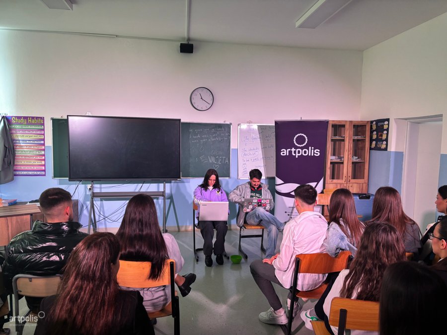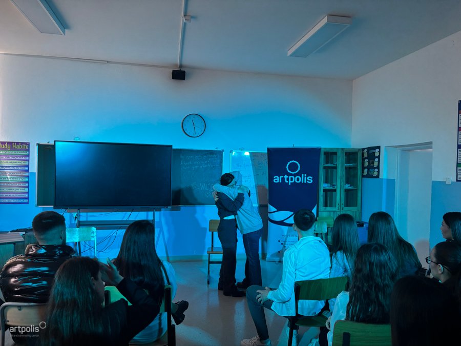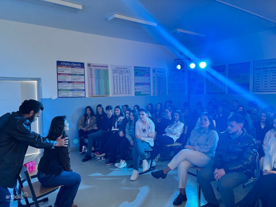 Shfaqja “Prapa Ekranit”, me dramaturgji dhe regji nga Zana Hoxha, u prezantua dje në Gjimnazin “Hamëz Jashari” në Skenderaj, duke nxitur debat mbi abuzimin online dhe pasojat reale të tij, në një kohë të intelegjencës artificiale tashmë në rritje. Duke përdorur metodën e forum teatrit, shfaqja e transformoi audiencën nga vëzhgues pasiv në aktor aktiv, duke e kthyer teatrin në një hapësirë të thellë diskutimi e reflektimi.